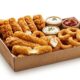 3 tenders, 3 mozza sticks, 3 bouchées camembert, 3 oignons rings