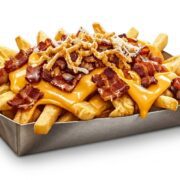 Frites, Sauce Cheddar, Bacon grillé, Oignons frits